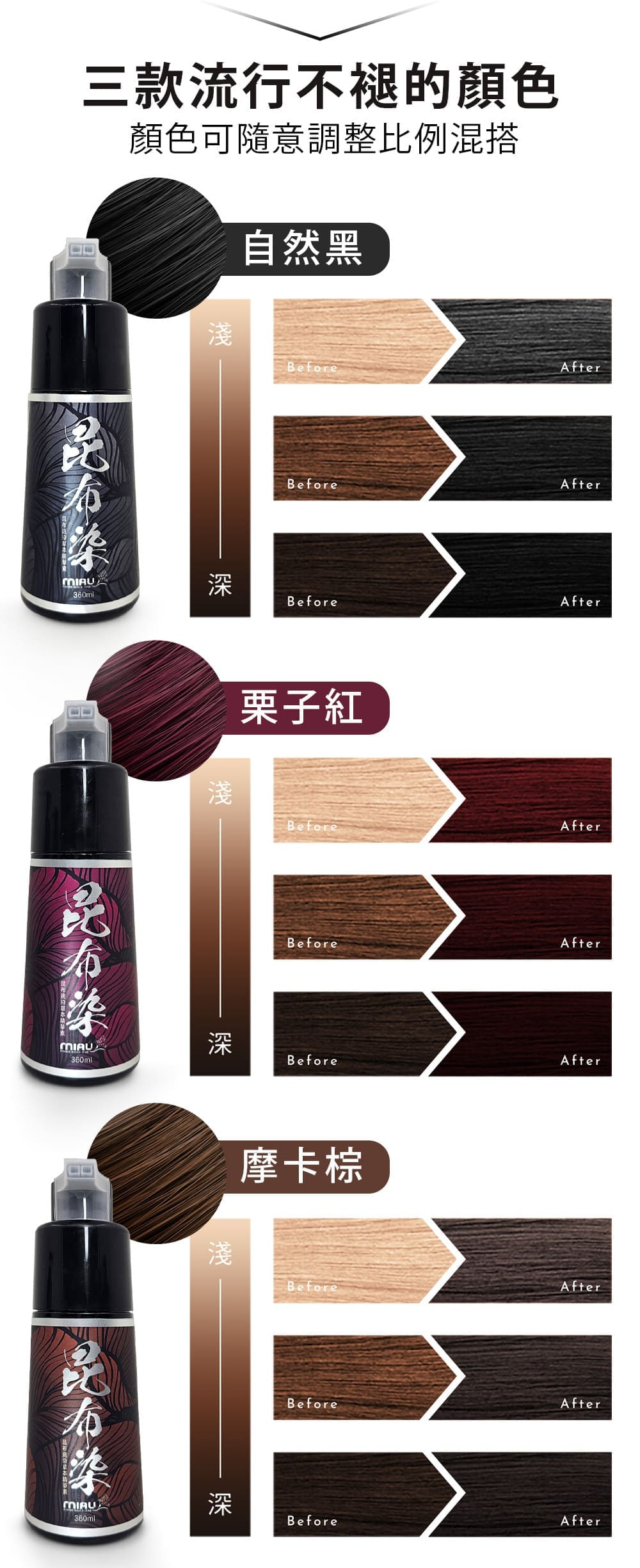 25分鐘前 均460/瓶►昆布染黑+紅+棕3瓶組