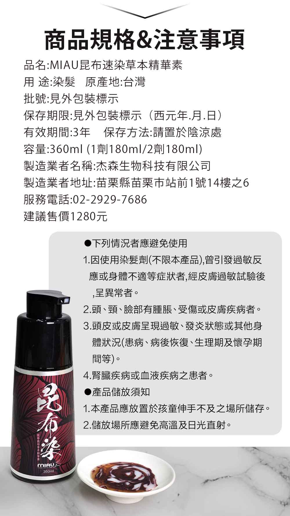 2分鐘前MIAU【昆布速染草本精華素】完美遮蓋白髮/染髮只要10分鐘/修護和鎖色的無臭配方/台灣生產〈無添加PPD/重金屬/甲醛/酯類防腐劑〉 - 均460/瓶►昆布染黑x3瓶組