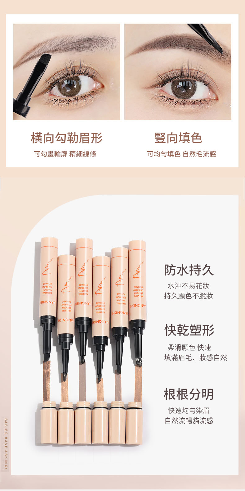 5分鐘前熱賣防水防汗染眉膏自然立體野生眉 一筆多用 眉毛、眼線、臥蠶、下至通用 持久不暈妝 - 任選5隻-免運費1198