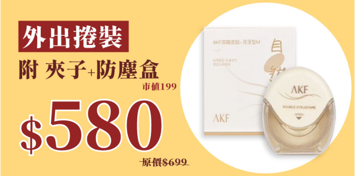 11分鐘前日韓熱銷TOP1【AKF電眼貼】#快速黏貼 #隱形無痕 #防水又防汗/秒變迷人電眼完美隱形貼合/千位女孩票選/命定雙眼皮貼就是它 - 【外出捲裝】附 夾子 & 防塵盒一入組NT$580
