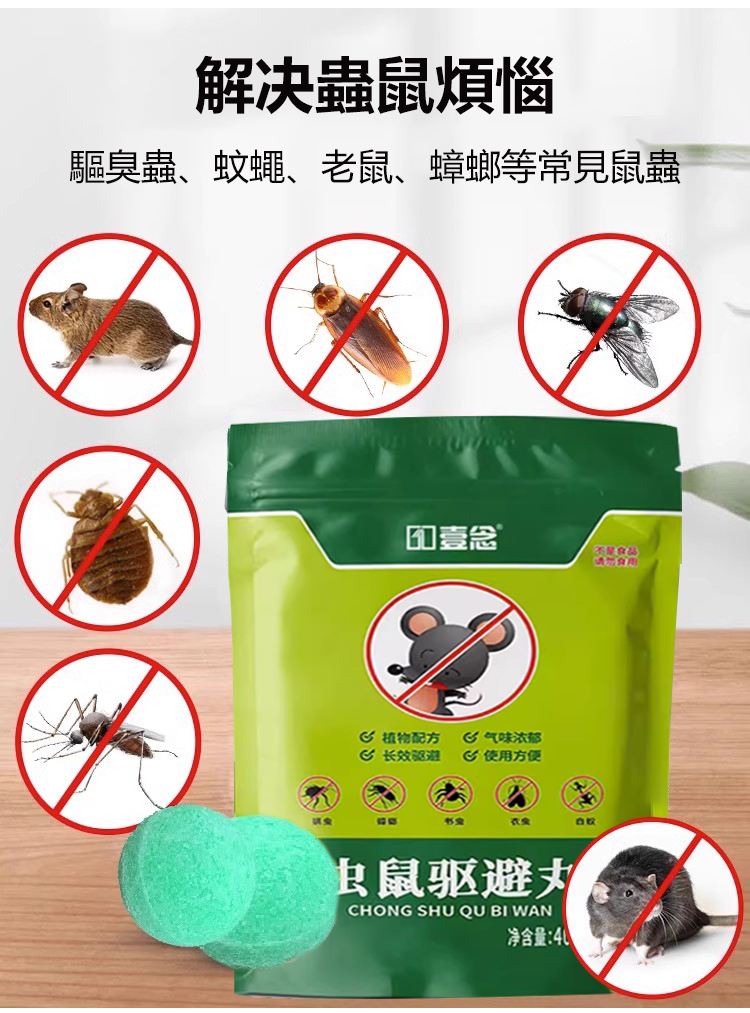 半小時前【驅蟲避鼠丸】消滅老鼠,驅蟲蚊蟲,讓你全年遠離老鼠和蚊蟲。對人和寵物無害,可放心使用! - 驅趕鼠蟲,安全一整年【狂殺特賣】十袋入組NT$1298